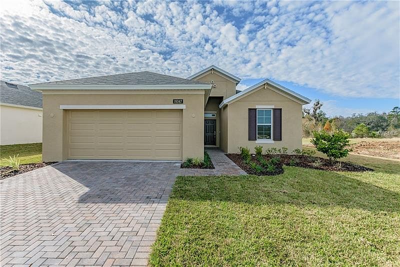 This 2/2/2 , 1545 sq. ft home offers an open floorplan loaded with upgrades including 42' upper kitchen cabinets trimmed with topper molding, SS back splash in Kitchen and extended to secondary cabinets, granite in kitchen and master bath. The Ashland floorplan is loaded with upgrades with a massive master walk in closet, oversized shower, home water softener system and reverse osmosis drinking system. All rooms have crown molding and 5" baseboards with open concept kitchen, dining and living. Bedrooms living room lanai and garage have fans with remotes. Lanai is screened for insect resistant enjoyment of rear yard. This homesite boasts both rear and front water views. Newly painted in and out in 2019. House has gutters and downspouts installed 2019. Garage floor has epoxy coating for protective inhibition. Natural Gas connected for use with installed kitchen stove, hot water tank, and clothes dryer. This home should not be missed! Pictures are for illustration purposes only. Options may vary.