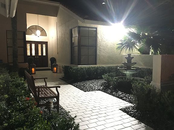 Country club DOES NOT require membership. Gated/24 hr security A rated schools. Home is updated immaculately: Marble Fireplace with ecological ethanol burner, LED lights throughout, stereo surround system for the pool area, built in barbecue area with keg refrigerator, mini refrigerator, TV and a sink (all included in the price), built-in outdoor marble fire pit, built in bench with cushions and throw pillows. All outdoor furniture included. Chandeliers might not be included. Owner Agent.