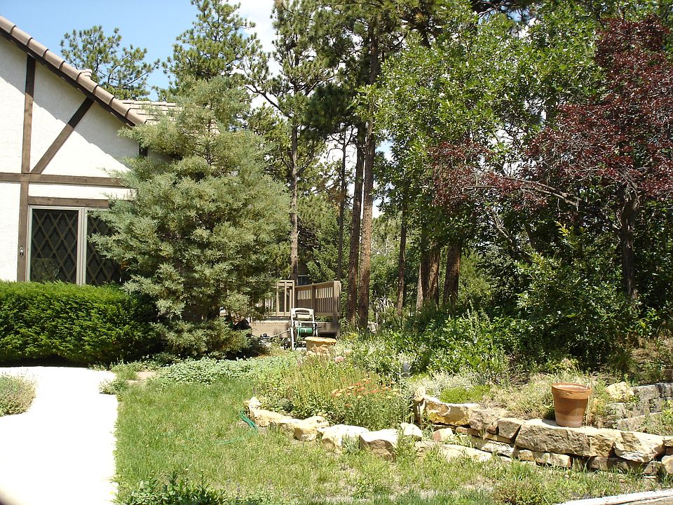 Stately Tudor style in gorgeous treed setting, quiet cul de sac, popular Woodmoor area! Variety of trees, easy care landscaping, loads of privacy, circular driveway, separate heated RV garage with hook up's. Large master suite on main level. Focal point of main level is 2 story, 4 sided stacked stone hearth with wood burning fireplace & vaulted ceilings in huge hardwood great room w/ walk out to large private deck. Custom slab granite countertops & newer stainless appliances including two ovens, large island/bar, eat in kitchen, walk out to deck perfect for casual outdoor meals. Six panel solid wood interior doors and stained trim & pocket doors on main level. Lower level family room features a second stacked stone fireplace/entertainment area with built in bookshelves. Rough plumb for future wet bar. Wired for surround sound with speakers on rear deck. Plenty of storage: large storage room, walk-in pantry, and large closets throughout. Heated garages. Lower level workshop room (other room 25 x 13) with peg board and built in workbenches makes a perfect "Man Cave" with natural light and concrete floor with access to RV garage. More living space could be created by adding a level in the RV garage. This might be a perfect spot for an in law suite, office suite or expansion/addition of master and/or secondary bedroom with access from the main level. Large windows bring in the view and sun with electric, plumbing and heat available. The RV garage door opening could then be changed to a standard door to make the space a tandem garage. New high efficiency furnace and water heater. New tile and carpet in basement. Premium concrete tile roof - resistant to hail, wind, and fire. Stucco exterior. Low maintenance house!