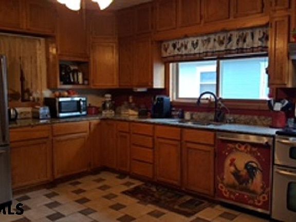 - Kitchen: Electric Range, Dishwasher, Refrigerator, Tile, Eat-In
