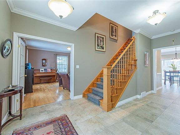 Welcome home to this beautiful architecturally designed Georgian residence. This 2 storey, 5 bedroom, 4 bathroom home is located on a 3/4 acre lot on a quiet court in west London, adjacent to the elite Riverbend-West 5 community. Each floor boasts 1780 square feet of living space that promotes the Live, Work, and Play philosophy. The beautifully proportioned formal and informal spaces have a classic appeal, with a spectacular new kitchen, open-concept family room, formal dining room and living room perfect for entertaining family and friends. The second floor hosts the spacious primary bedroom with walk-in closet and large 5 piece ensuite, along with four large bedrooms, 4 piece bathroom and laundry closet. The basement level offers a large family/games room, 2 generous-sized rooms currently used as an office and a gym, and a 3 piece bathroom with a heated floor. Features include 9' ceilings with built-in speakers on the main level, extra wide staircases and hallways, spacious mudroom, filtered well water with UV system, oversized 2 car garage and a fully fenced backyard. Walking distance to an elementary school, and close to shopping, dining, nature trails and many fine golf courses. One of London's finest!