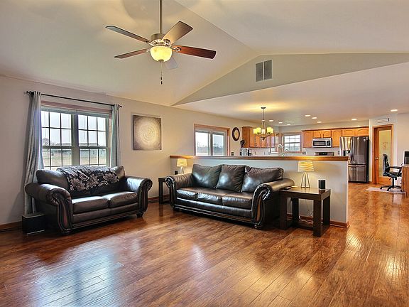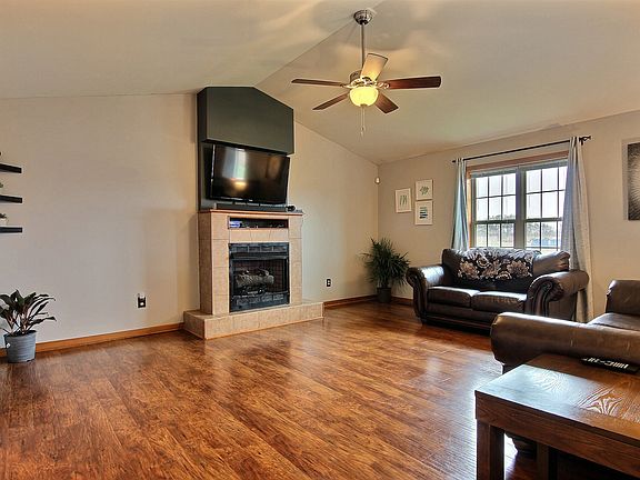 Open Concept 3 bedroom 3 bath ranch with almost 1800 SF & 3 car finished garage on a concrete crawl space!! Large foyer with double closet opens to the spacious living room featuring cathedral ceilings and gas fireplace which opens to the beautiful kitchen/dining area all with wood laminate flooring, walk-in pantry & island in kitchen and a built-in desk area, large laundry/mud room and 1/2 bath with door to the finished garage, 3 bedrooms including huge master suite with private 3/4 bath and walk-in closet, central air, 6 panel wood doors, composite deck & more!
