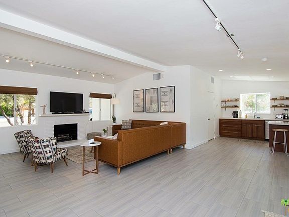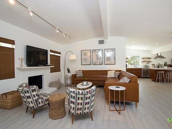 Palm Springs, mid-century Meiselman, centrally located in Sunrise Park. This home sits on an over-sized corner lot. Expansive south facing entertainer's backyard with spectacular mountain views, features a saltwater pebble tech pool, dining cabana & covered patio. Extensively remodeled in 2015 to open up the space giving the home the highly desired open concept design. New kitchen, flooring. Home has newer AC units, and foam roof. Most all the windows have been updated as well. This home has only one neighbor making for a very peaceful setting. Perfect as a Primary home, vacation home or a Vacation Rental with an excellent history of a successful Vacation Rental. Centrally located close to down town, shopping and all the fantastic activities in Palm Springs. Don't miss out on this fantastic opportunity. Offered Turnkey Furnished.