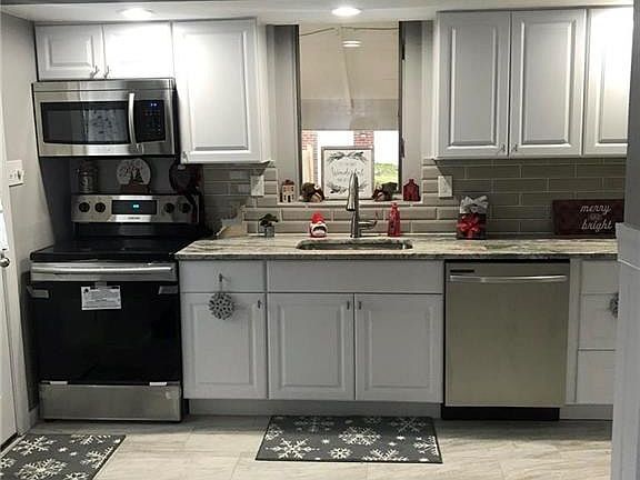 Enjoy the convenience of this beautifully renovated brick home in Midway Manor! The first floor features a large living room with new flooring that is easy to keep clean. The kitchen has been updated to the appeal of an HGTV enthusiast with brand new white cabinets, grey subway tile backsplash, stainless steal appliances and marbled looking granite counter tops. The kitchen opens into the dining area that has new flooring to match the living room. As you walk upstairs you'll find a quaint window seat that doubles as a cedar chest. The three bedrooms have brand new carpet and paint. The full bathroom has been renovated to match the entire vibe of the home! The well kept basement has a shower and toilet which can be easily finished to a full bath. Outside there is a covered porch that overlooks a large private backyard to enjoy with family and friends. This home also features a brand new hot water heater, newer roof and economical gas heat.
