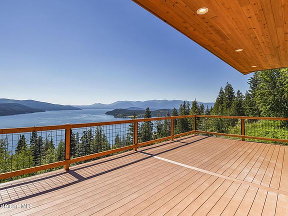 Here is the chance to own that mountain top lake view property you have always looked for. Just under 13 acres of views of the Selkirks, Monarch mountains and Lake Pend Oreille. The massive desk serves as a place to take it all in and relax. This is comprised of two lots with power provided to each and a septic system designed for 2 4 bedroom homes. The well produces 30+ gpm and the home has a back up generator that runs on propane. Also central heat and AC along with a gas fireplace to keep you warm. the majority of this property has National Forrest boarding to the North East.