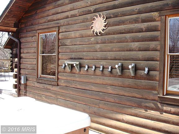 Custom- Built (2004) LOG HOME - PRIV 2 AC LOT. Open concept rancher features dramatic views, soaring ceilings, huge 2 car gar w/ ample storage, 1 wd brning / 1 pellet stove guaranteed to warm those cold winter nights. Your own private retreat backs to woodlands & stream. Enjoy life from your covered frnt prch & huge deck; great for entertaining. Bonus In Law Apt w/ 1BR,1FB,kitchen & covered patio
