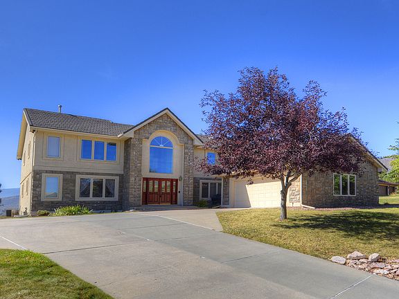 Think BIG! Views, foyer, rooms, above grade square footage- they're all huge! Grand double door entry to two-story foyer with marble floor * Open layout * Two staircases and catwalk * MBR has walk out to balcony- room-sized walk-in closet- 6pc bath * beds share jack-n-jill bath with private sink in each * skylights * open kitchen with breakfast nook- appliances stay * Sunken circular living room with fireplace in stone wall * Exercise room * Rec room * Windows galore let in sunshine and mountain views * Lovely setting!