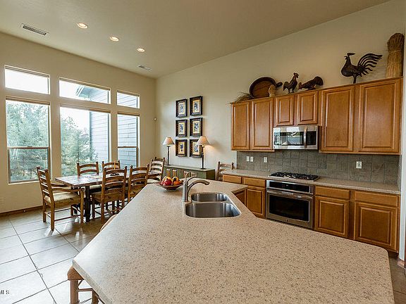 BRING YOUR SUITCASE! That's all you will need. Former model. Most furniture is available to purchase outside of escrow. Beautiful end unit in Aspen Creek Meadows. Live on one level with gourmet kitchen. Guest suite in lower level. Bright and open. Custom cabinets with stainless steel appliances. Knotty alder doors. Gas fireplace with stone face, plantation shutters, decorator lighting, alarm system, Kenmore washer & dryer. Two car garage with no steps to home. Water softner, recir pump for hot water, & lots of storage. Located behind the gates in one of the most desired communities. Be a part of the new Capital Canyon Golf & social club, Prescott's premier club. Home is priced to sell now