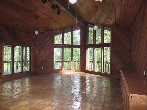 Wooded 12.36 acres, rustic home with all the extras, 3 fireplaces, sauna, multiple decks, 4 car garage, custom kitchen with built-in abundance of cabinets, vaulted ceilings, built-in bar, and tile and carpet flooring.