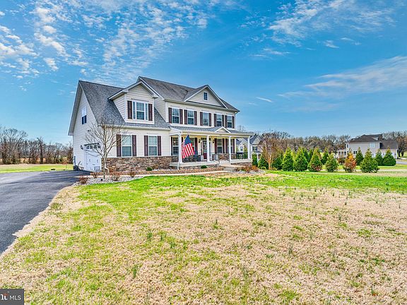 **PRICE IMPROVEMENT!** Welcome to this beautiful 5-bedroom, 4-bathroom Colonial home, just 7 years young, nestled on a flat 2.25-acre lot with plenty of space to enjoy. A charming front porch welcomes you, setting the tone for the bright and airy interior, where natural light floods every room. Inside, you'll find wide plank hardwood flooring throughout, adding warmth and elegance. The gourmet kitchen features KraftMaid cabinetry, granite countertops, stainless steel appliances, a double wall oven, and ample counter space. The living room is enhanced by a cozy gas fireplace, perfect for gatherings. The main level bedroom/office offers flexibility with an attached full bath. Upstairs, the primary suite is a true retreat, boasting tray ceilings, a luxurious en-suite with a large soaking tub, separate shower, and double sinks. Three additional spacious bedrooms and a convenient upstairs laundry room complete the upper level. The fully finished basement provides tons of extra living space, ideal for recreation, entertainment, or storage. Step outside to the 20x16 Trex deck, perfect for relaxing and enjoying the serene surroundings. Prime Location & No HOA! Conveniently located within close proximity to Joint Base Andrews, Joint Base Anacostia-Bolling, Washington D.C., and Annapolis, this home is situated in a top-rated school district—all with no HOA fees to worry about! Don’t miss out on this incredible opportunity!