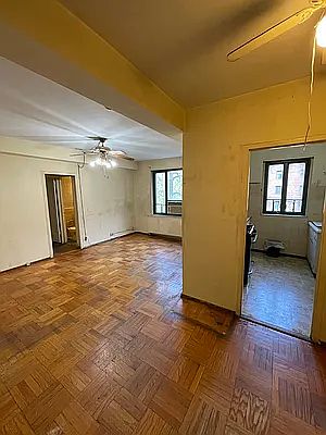 This apartment receives plentiful sunlight, enjoys green courtyard views from all exposures, has a large windowed kitchen, and has hardwood floors throughout.