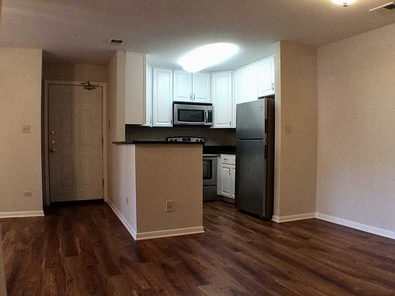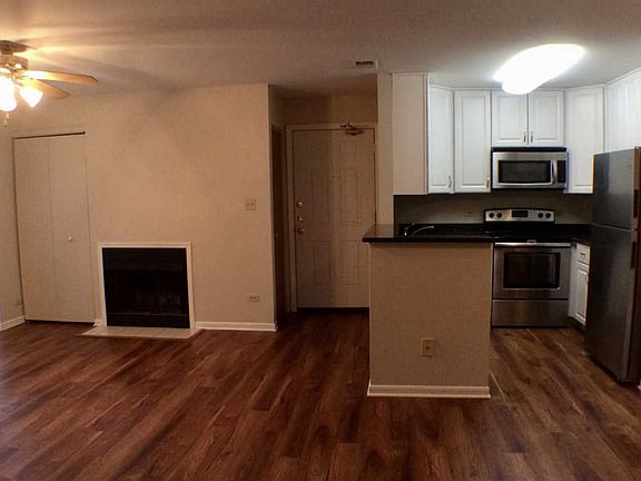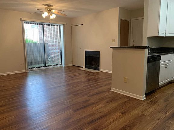 Tastefully Renovated * Open Floor plan * 2 Bedrooms * No Stairs, Garden Level * White Kitchen cabinetry with Breakfast Bar, granite countertops and stainless steel appliances* * Luxury Vinyl Flooring *Freshly Painted; Neutral Walls with White Trim * Gas Fireplace * Luxury Bath with granite * Large Walk-In Closet * Two Private Balconies with Extra Storage * In-Unit Washer and Dryer * Two Unassigned Parking Spaces * Close to Shopping, Grocery Store, Mid Town Athletic Club, Forest Preserve Trails, Deer Park and Target.