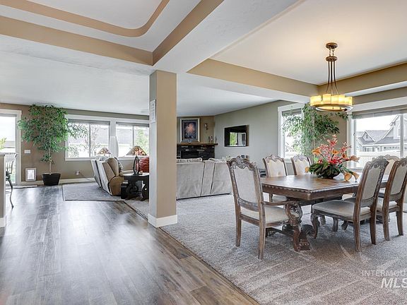 Better than new, home in Kuna! 3 bd/2.5 w/ office & 3 car, fully insulated garage. Spacious & open; tons of natural light, vinyl fenced corner lot. Numerous upgrades: cabinets, flooring, formal dining, corner fireplace w/ mantel & hearth, dual walk-ins, large custom tile walk-in shower w/ dual shower heads. SS appliances & dual convection ovens, granite counters and walk-in pantry w/ outlets. Paved RV Pkg, water feature & sunken natural gas fire pit & gazebo in picturesque backyard!