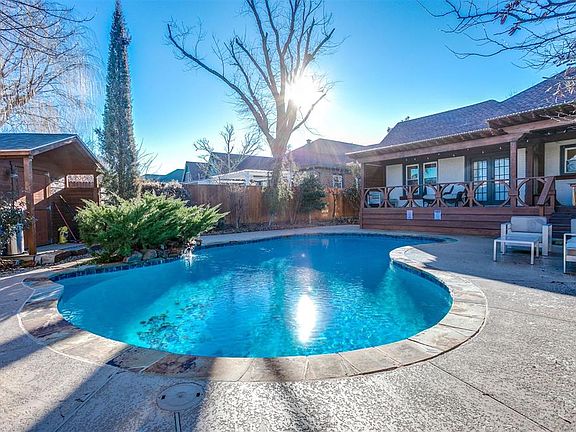 Historic bungalow in Gatewood with a gorgeous inground pool and a detached studio with heating and cooling. This is a wonderful historic home. The living room has a rare full-barrel ceiling. The formal dining room has a Pullman ceiling. The pool has a natural stone waterfall feature. An architectural feature wooden deck spans the entire back of the house for outside living in any weather and all seasons. Updates include: CHA, all windows replaced with energy efficient Low E windows, water heater replaced, electric upgraded, bath completely remodeled and has a door to the pool deck, landscaping is fabulous around the pool and in the front. This home was used to shoot a commercial recently. A terrific home only blocks from The Plaza District's theater, restaurants, bars, shopping and night life.