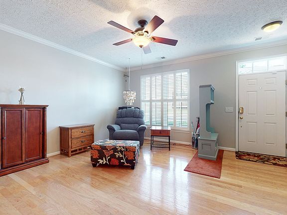 MOTIVATED SELLER. Spacious and Open. All paint is fresh, no nail holes, new carpet was just installed. All Hardwood to be replaced after 9/4. The kitchen is huge with plenty of cabinets and an island. Larger living room and larger bedrooms all have plantation shutters and a large full bath with 2 entrances and a garden tub/shower combo serves them both. Primary BR boasts a super big closet that is 5x15 ft. Secondary BR has an oversized closet. There is a deck with woods and greenspace behind & you can see the lake in the winter. This unit has 2 designated parking spaces in front. There are amenities that include walking trails and discounted golf. HVAC is 3 yrs old. Laundry Rm doors will be hung moving day.