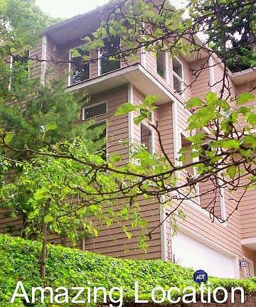 Close In, Secluded Contemporary with Amazing Tree Top Views - Close In, Secluded Contemporary with Amazing Tree Top Views This home is perfectly located on the edge of downtown Portland for the utmost of ease in urban access. While inside this abundantly light filled home, gazing out the many windows, it feels like you're perched high in mountainous treetops. This crisp contemporary home is a uniquely designed duet style attached home that lives like a spacious single family residence. Complete with a double garage and a peacefully private back yard garden space. The beautiful stone patio is an idyllic setting to relax fireside or entertain. The garage conveniently opens into the main entry along side a generous storage room perfectly positioned for easy access for a multitude of uses. Up the stairs from the entry, opens to a light infused, vaulted living space with a sundry of windows. The stunning hardwood floors flow and connect the various living areas, including an elevated office space on one side and the raised kitchen and dining area ideally overlooking the main living with gas fireplace. The upper level of the home contains two bedrooms, both with generous en suites and expansive walk-in closets with an abundance of built ins and storage. The master bedroom features large windows looking out to the sweeping tree top views and the guest bedroom overlooks the rear garden. No smoking and no pets please. Ainsworth Elementary, West Sylvan Middle, Lincoln High School. No Cats Allowed (RLNE4523792)