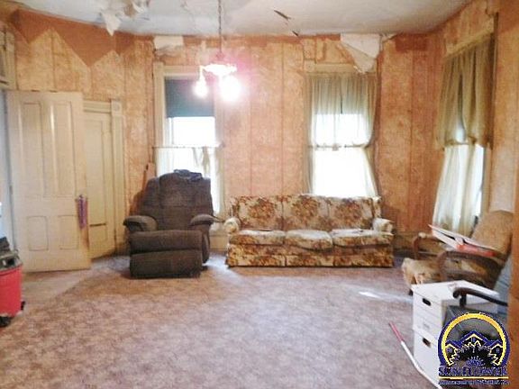 HISTORIC BRICK 2 1/2 STORY VICTORIAN ON LARGE CORNER LOT. 4 BEDROOM, 2 BATH IS READY TO BE RESTORED TO FORMAL ELEGANCE. HARDWOOD FLOORS, HIGH CEILINGS, LOTS OF ORIGINAL FIXTURES. COVERED FRONT PORCH. PREVIOUSLY CONVERTED TO TWO SEPARATE LIVING AREAS ONE ON MAIN AND ONE UP. PRIVATE ENTRANCE TO UPPER STORY. ATTIC HAS HIGH CEILING & COULD MAKE FOR FUTURE EXPANSION. FULL UNFIN. BSMT & DET GARAGE WITH OFFICE/WKSHOP. PROPERTY HAS BEEN IN SAME FAMILY FOR MANY YEARS. SOLD AS IS. CLOSE TO WASHBURN UNIV.