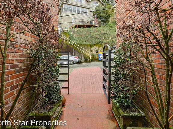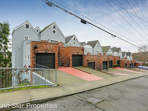 Spacious Townhome in Goose Hollow - Come home to this beautiful and spacious townhome, perfectly perched with city, bridge and mountain views in the charming and friendly Goose Hollow neighborhood. This ideal location allows for easy urban access and walkability yet is also tucked away into the serene and private hillside. Be welcomed by two individual garages and drives as well as a quaint gated brick court yard. The main level features an updated and cozy kitchen, designated dining space, powder bath, and a light infused living room with gas fireplace and glass French doors opening to a generous balcony to enjoy the treetop and panoramic city view. This home offers unique flexibility with four bedroom en suites. Two light and bright rooms on the upper level, both with vaulted ceilings, ceiling fans, private en suite access and balcony's. The lower level features two spacious bedrooms each with private ensuites, with one bedroom also offering a covered balcony. No smoking or pets please. Chapman Elementary, West Sylvan Middle, Lincoln High School. This dwelling unit does not qualify as a 'Type A Unit' (accessible unit) per Oregon structural building code and ICC A117.1. No Pets Allowed (RLNE5669064)