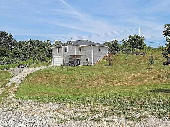 Ranch style with FULL LIVING QUARTERS in the basement. 2nd laundry, kitchen with appliances, living room, sleeping area. All the same quality and finish as the main level. 9.5 ft ceilings. Living quarters or finished basement is heavily insulated for sound and privacy. Would make a nice rental too! Entire home has hard wood floors except for the stairs. Hickory wood in main floor living room, hall, master bedroom, divided bedroom plan and surround sound. Walk in closets. More than adequate storage areas. Addition room off of the LR could be an office, den room for your plants etc.. Main level laundry room. Two car garage PLUS a 20x38 suspended garage/shop with over-sized garage door, opener, driveway to lower level. Tray ceiling in main living room has recessed lighting. Kitchen Cabinets are custom hickory. Both garages are heated and cooled. Remote works for both. Fenced area for pet. County water, SEMO Electric for internet, phone, TV. Nearly 1 acre. Internet is CIRCLE FIBER.