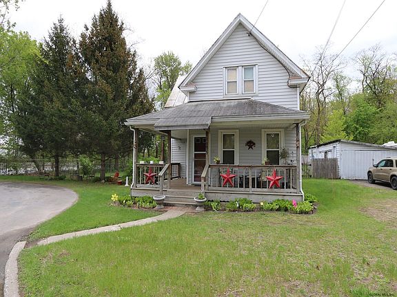 Here is a rare opportunity to own a triple lot located on a dead-end street in the Mohonasen school district. You'll love the 3-car detached garage for working on cars, woodworking, or other hobbies! Enjoy the charming wraparound front porch; an additional room on the second floor with kitchen can be converted back to a bedroom. Metal roof, newer furnace and vintage style kitchen with built in china cabinet are some of the many features of this home. This home is being sold in as-is condition. There are many possibilities, bring your imagination, roll up your sleeves and make this property your own!