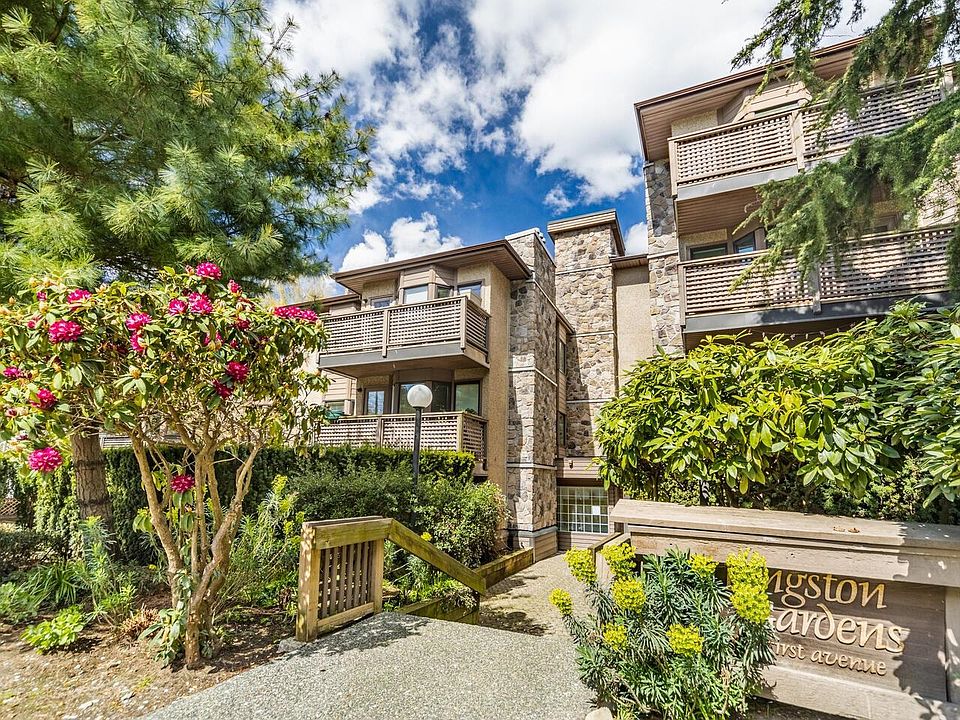 Welcome to Kingston Gardens! Steps from Kits beach and if you're looking for outdoor space, you'll love this gorgeous peaceful green oasis w/watering system in place. Direct access from your own private gate for your dog walks or returning with kayaks and bikes. Entertain, BBQ and enjoy your own garden area. Best location! Walk to beach, pool, seawall, shopping & restaurants. Extensively updated with newer kitchen, S/S appliances, quartz counters, beautiful backsplash, gorgeous bathroom with soaker tub & separate shower. Hand scraped H/W floors throughout this floorplan with separate dining/living areas, cozy gas fireplace, 2 bdrms with lots of light and in-suite laundry. Building has new windows, new roof, new hot/w system. BONUS - 2 Parking! Make this coveted location yours! By appt only