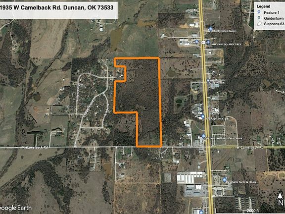 This 63 +/- acre tract in Duncan has the potential to be so many things. Location is ideal with blacktop frontage.The Duncan bypass is to the west and highway 81 just 1/4 mile to the east. If you are looking to build and enjoy the pleasures of hunting and letting your kids out to play in the woods, this is the place! The property is 90% wooded which is excellent for hunting and a huge bonus for building a home. Create a drive thru the timber and situate your home in the perfect spot with nature. This could also be a great investment piece as well. Neighborhoods with one to two acre lots are hard to come by and this property would be a great candidate for that application! Blacktop frontage, 1/4 mile east of Highway 81, Minutes from Duncan and Marlow, Ideal property for a large estate in town, Heavily wooded with a wet weather creek. All utilities available on Camelback Road.