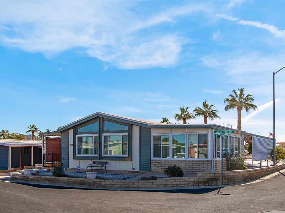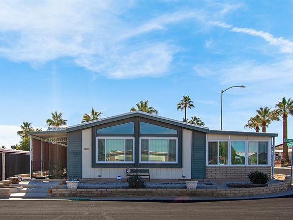 Lovely 2 bedroom home on corner lot in 55+ community featuring vaulted ceilings with north facing main living room with windows galore to allow for natural lighting; newer windows throughout along with newer flooring. AZ Room off living area; recently updated shower in master bedroom. 2 storage areas along with large carport and uncovered patio area. Home being sold as-is; furnishings convey. Close proximity to YRMC, shopping and dining.