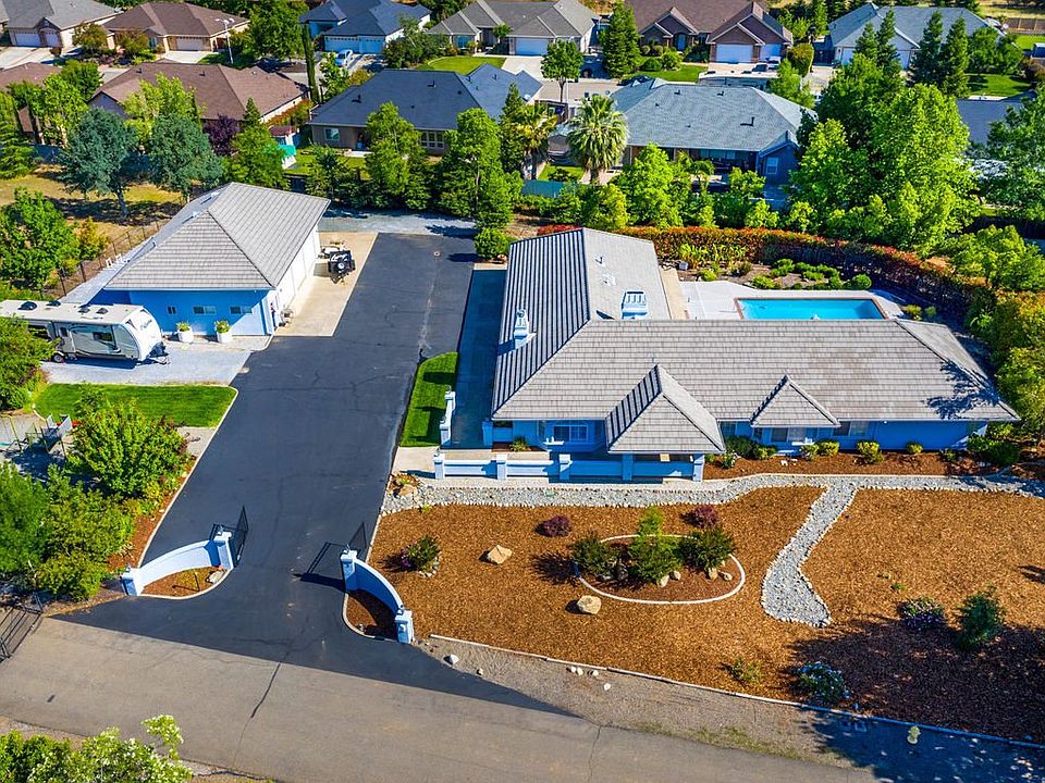 Immaculate custom home with POOL, massive SHOP with 3-12ft bays & GUEST SUITE! Desirable location and amazing curb appeal on 1.88 acres. Inviting courtyard entry leading into an open floorplan featuring custom finishes throughout! Gorgeous kitchen with a large prep island, dual sinks and double ovens. Formal dining with built ins. Relaxing master suite. Large RV parking. Truly a must see home!