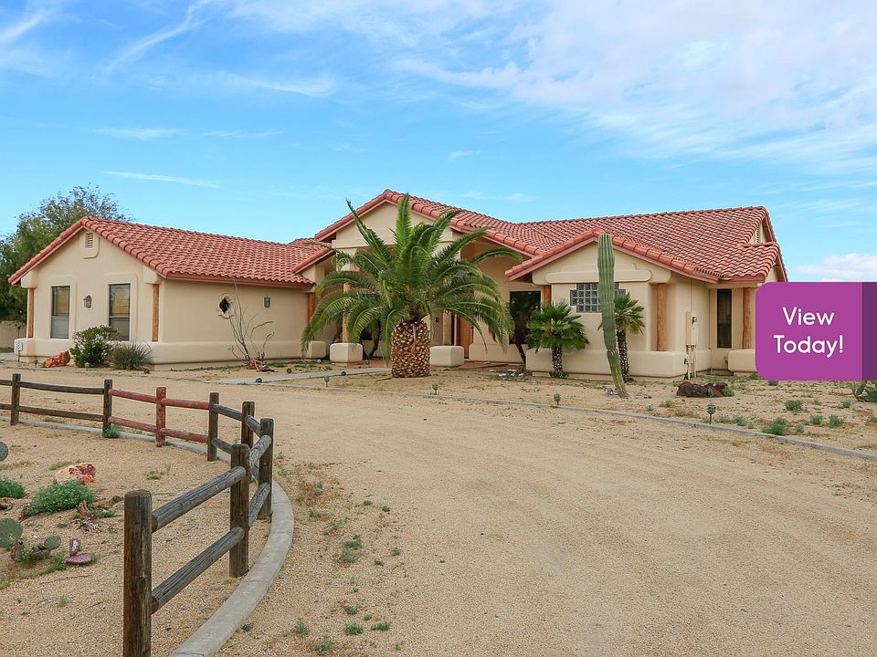 Do not miss this incredible 4 bedroom/ 3 bathroom home with three car garage in the desirable Grand View Ranches in Buckeye! This home sits on an enormous lot with mountain views. Enter and discover tons of space with vaulted ceilings, recessed lighting, and a great split floor plan. The gorgeous kitchen comes complete with all stainless steel appliances including refrigerator, plus kitchen island, and a large breakfast bar. The master bedroom features a beautiful large bathroom with dual sink vanity, large walk in closet, and upgraded shower plus soaking tub! Outside you will be impressed! Enjoy the sunsets under your extended covered patio. Enjoy a private pool with pavers as well as tons of land featuring grassy areas and desert landscaping. RV parking available. Contact us to see this beautiful home today! Listed By: Easy Street Realty and Management LLC