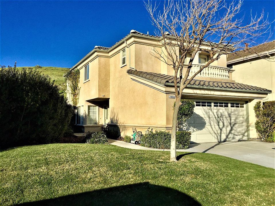 This beautiful Acclaim home has many upgrades. Custom two-tone paint, wood floors and carpet. Granite countertops in kitchen. An elegant 3-sided glass fireplace adds a warm atmosphere to the living room and family room. This two-story home sits on a large view lot with breathtaking views of the hills and valley. No home behind property just greenbelt. It is close to parks, pools and school.