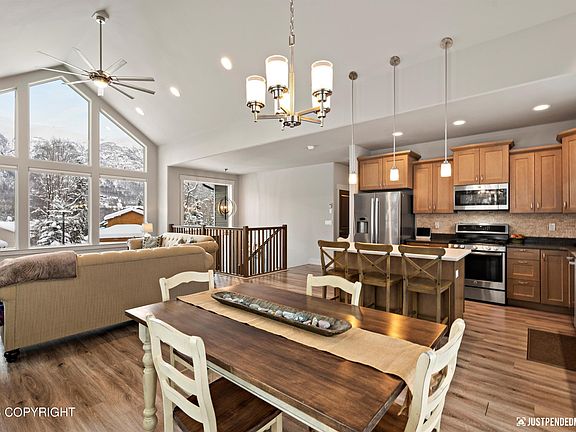One of the newest builds in Eaglewood, and it shows like a model today! This custom Troy Davis home is positioned on a cul-de-sac facing the mountains with pretty curb appeal. Reverse living layout features a vaulted great room & wall of south facing windows that perfectly frame the mtn views & let in loads of natural light. On trend interior w/LVP flooring, modern grays, quartz & tile accents.Open kitchen and casual dining with island bar seating, stainless steel appliances, gas oven/range and direct access to the back deck for convenient grill and chill cooking. Master suite is on the same floor with a generous walk-in closet and built-in organizers. The adjoining bathroom features textured plank ceramic tile, a double vanity with quartz countertops and undermount sinks, a walk-in shower with a high quality glass door on rollers and a corner soaker tub. Second bedroom and full bath are also on the upper level. The downstairs bedroom is as big as a lot of masters with a walk-in closet and views. The bonus room downstairs is set up as a 4th bedroom with another walk-in closet. The window doesn't meet egress, but could be expanded to open into a well if buyer desires after closing. Full size laundry room comes with a front loader washer/dryer that stay and a convenient linen closet. 5* energy rated with a high efficiency furnace, HRV system and on demand water heater. The garage is the space of a 3 car with more than 750sf that includes a shop area with a workbench and so many storage/organizational fixtures to hang and hold tools, skis, fishing rods, outdoor gear and household extras in a tidy fashion. Handy Seller built a partitioned cubby system - perfect for keeping everybody's personal gear accounted for in their own space. Partially fenced back yard features a nice lawn, Trex deck, and mature trees to add privacy. Don't miss the new 12'x8' shed in the back for additional exterior storage options. Eaglewood is a master planned community with lighted sidewalks, multi-use trails, area playgrounds and community green space. Awesome commute location and great schools.