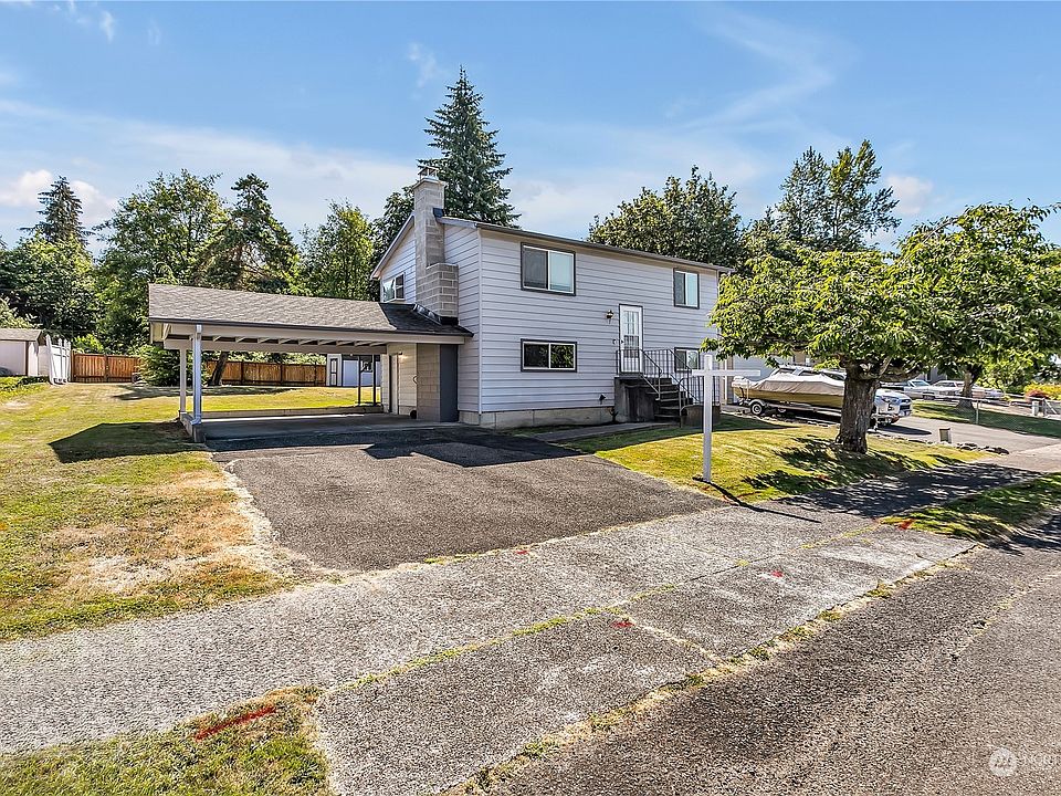 Introducing the epitome of charm nestled in a tranquil Lake Youngs area! This delightful home with a little TLC needed, offers 3 bedrooms, 2 bathrooms (3/4 bathrooms, no tub) plus a unfinished room, ideal for your finishing. The upper level boasts living room with a wood-burning fireplace and a kitchen with eating space. Retreat to the back deck with ample space for entertaining. The primary bedroom featuring a walk-in closet w/private access to bathroom. Downstairs, discover a versatile bonus room, and 2 additional bedrooms, and another bath. Spacious deck overlooking the huge partially fenced backyard. Convenience is at your doorstep, just minutes away from freeways, airport, and shopping!