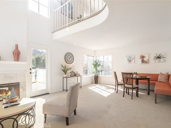 Tucked away in the highly desirable, guard gated community of SeaCliff on the Greens just across the way from the ocean is this stunning 2-bedroom, 2.5-bath end unit home with a downstairs den that can easily be converted into a third bedroom, and a spacious loft on the second level. The home has brand new carpet and fresh interior paint! This is the largest floor plan offered of all the SeaCliff Club Series models! The location is incredible as an end unit overlooking a sparkling pool, and the community is just a short distance to the shops and eateries of Pacific City and Main Street, as well as the fun activities of Downtown Huntington Beach. The corner lot location offers unparalleled privacy and also overlooks one of the community pools. Your front courtyard leads to the home's entrance, where you'll immediately notice the abundance of natural light. Step down into the formal dining area, which leads to the kitchen equipped with granite countertops and recessed lighting. The lower level also hosts the spacious formal living room with a fireplace, as well as a convenient bonus room/den that can easily be converted into a downstairs bedroom. Up the stairs you'll see the sizable loft area -- perfect for an at-home workspace -- and just down the hallway is a guest bedroom with an attached bathroom. The primary bedroom suite with vaulted ceilings has its own attached balcony overlooking the front patio and community pool, opening into the primary bath with dual sinks, a tub, and walk-in shower. Offering resort-like amenities and sitting just a short distance to the beach, this SeaCliff on the Greens home is a must-see!