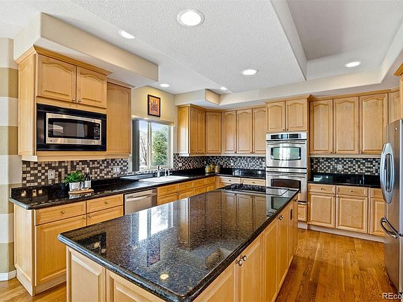 Large home in Tuscany South with all the bells and whistles! The huge vaulted ceilings and dramatic entryway with a beautiful curved stairway make an impressive first impression. So much volume! There's room for everyone with terrific spaces for congregating and all important social distancing--even at home! The kitchen is a custom combination of 42" Maple Cabinetry over black granite, a full suite of stainless appliances include the double oven, armoire style fridge and a beautiful, large island--it's a cook's dream come true. The formal spaces, dining room and living room are warm and rich with designer colors, chair rail, accentuated with columns and accentuated with a beautiful fireplace. The master bedroom is an amazing, sumptuous, day-at-the-spa everyday vaulted space with a well crafted 5 piece bathroom anchored by a jetted spa tub and see through fireplace and highlighted with thoughtfully designed cabinetry and mirrors. You could get lost in the master closet! three additional bedrooms upstairs makes for easy living and convenience. Meanwhile the incredibly finished basement is a reprieve from all the worries of the world with plenty of space for ping pong or a pool table, another eating area and there's a huge granite bar and kitchen convenient to the raised floor theatre room complete with wide screen projector, fireplace and dimmable lighting to set the stage! This is a home you simply have to see!