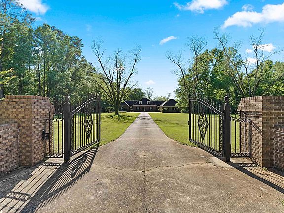 This stunning home and grounds embody the word estate. Beginning with a private gated entrance to the stately home with over 4300sq ft on over 6 acres, this property also includes 275’ of frontage on the springfed pond, a 60 x 40 shop with a private drive, a gunite salt water pool with the most amazing covered porch for entertaining, and a private rose garden with its own fountain are just the highlights of this property. Inside you’ll fine heart pine floor in the foyer, grand living space and formal dining room. The Primary Suite is spacious with an en-suite bathroom with claw foot tub and multiple walk in closets. The kitchen was totally updated in 2017 and features custom cabinetry with sliders and ample storage, granite countertops, stainless steel appliances and a large fire clay sink. Just off the kitchen is a cozy den with a gas log fireplace and breakfast room which leads to the entertainers dream covered porch giving you the sights and sounds from the rose garden and the pool which was installed in 2017. The home has all of the most important updates: a bronze fortified roof, updated electrical and plumbing, and impact glass windows. This is a must see property. Schedule your tour today.