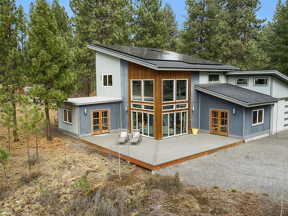 Nestled in the treesRadiant floor heatingLarge south facing windowsRaised garden bedsEco-friendly dekton kitchen countertopsNearly an acre