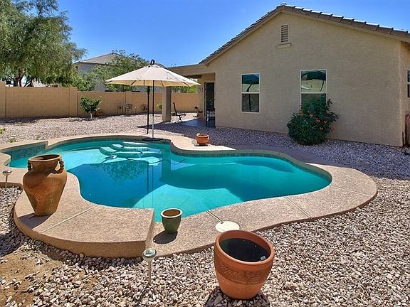 Newer Pulte home built in 2012 on a great corner lot with full block walls enclosing the backyard for privacy and safety. Original Owner. 3 Bedroom, 2 Bath home plus a den/office that has been well maintained. Gorgeous swimming pool for keeping cool on those warm Summer days - one of the few homes in the area with a private pool. Picture your family having hours of fun in the backyard wonderland. Nicely landscaped. This quality home is priced at the same level of plans that do not have a pool.