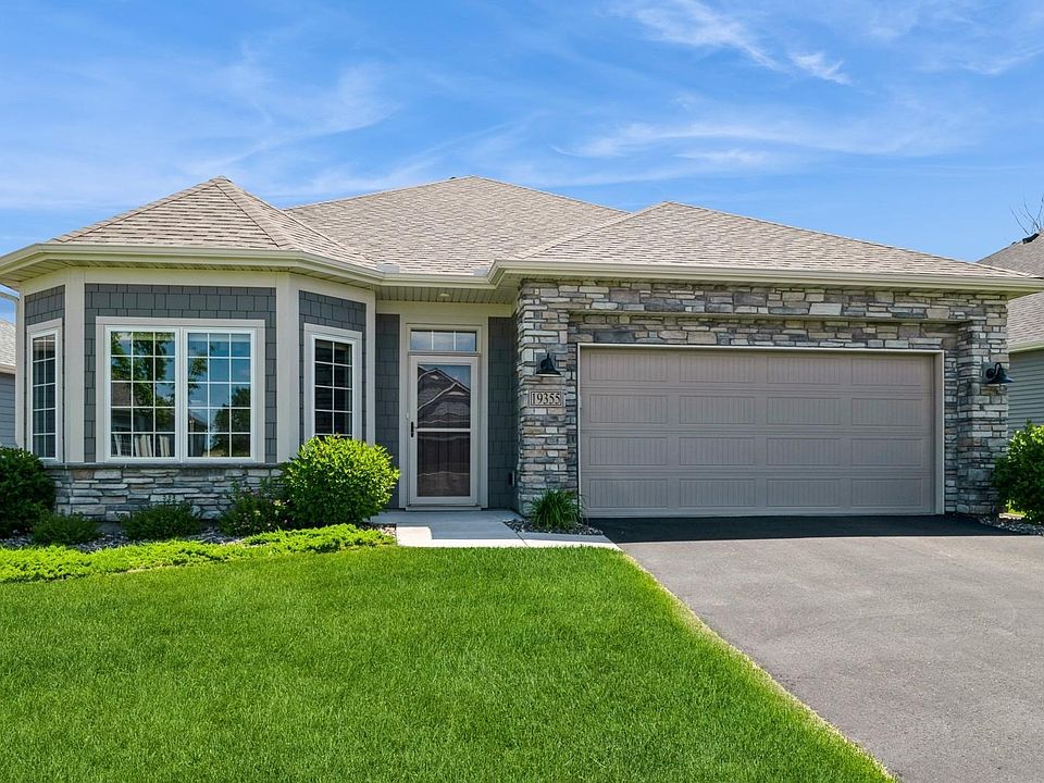 Be ready to be wowed by this amazing single level home! As you drive up you will see the gorgeous stone surrounding the garage. As you enter you will notice the pristine LVP flooring that flows through the entry, kitchen, family room and sun room, features top of the line s/s appliances, granite countertops with a breakfast bar plus so many beautiful cabinets. The family room features an absolutely amazing gas fireplace with a stone surround and custom painting. The owners suite is impressive with lots of space, 3/4 bathroom with dual ceilings, custom paint, gorgeous blinds and windows on all sides overlooking the serine backyard with a private patio and no neighbors behind you!