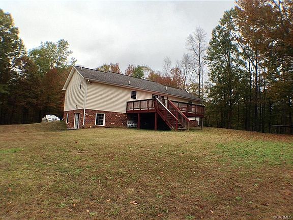 30 Min commute to RVA, west end. Low taxes! 6.25 Acres, PRIVATE setting! 2 USABLE levels over 2000 plus S.F.!!Maint free vinyl siding, dimensional roof, heat pump central air, FORTY FT OUTBUILDING. PRIVACY! Four BDRM's, THREE full baths. Cathedral ceilings, Kitchen offers oodles cabinets & TWO lazy Susans. Huge pantry. Newer laminate modern flooring. Samsung SS micro, smooth top stove, refrig conveys! DOUBLE hung easy clean windows, Dishwasher, LOWER LEVEL FINISHED! 21'4" x 21'6" den, rec room exercise room, TWO MASTER SUITES one up one down, lower suite 28 x 21 WAlk in CLOSET, PRIVATE BATH, recessed lites up & down, BUILT INS & MORE! SPREAD OUT! quiet SETTING, END OF ROAD. So much to offer at very REASONABLE price! HURRY! SEE PLAT SUPPLEMENT.