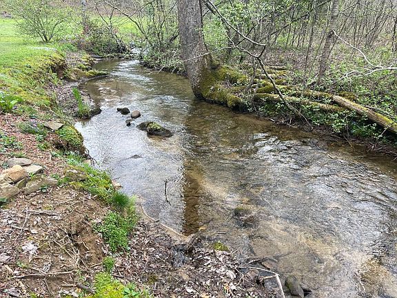 The sound of the creek is music to the ears while sitting on the covered porch on this log & stone sided cabin. Wide & Loud, enjoy over 400 feet of Cook Creek Frontage through this property. Over 11 unrestricted acres with pasture & wood land to develop or use how you want to! Pasture area fenced in with outbuildings and barn structure.