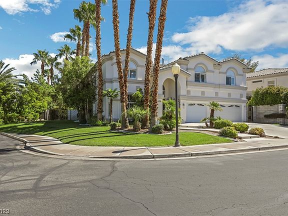Exquisite 4-bedroom, 3.5-bathroom home situated within the prestigious Guard Gated Golf Community of The Grand Legacy. Every bedroom offers direct access to a luxurious bathroom.The primary bedroom is located in separate wing and features a two way fireplace, retreat area, and private balcony overlooking scenic surroundings. The main living space boasts impressive vaulted ceilings and wet bar, creating a grand and spacious atmosphere. Outside, a private recently replastered pool and spa complement the oversized corner homesite, providing an ideal setting for relaxation and entertainment. Enjoy the community's additional amenities, including a park and tennis courts, enhancing the overall lifestyle in this exclusive neighborhood. Conveniently located to shopping, Green Valley Ranch Hotel and Spa, The District, and freeways. You do not want to miss this!