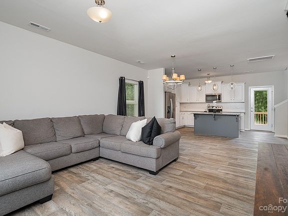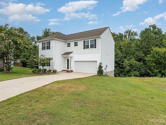 Welcome to this beautiful 3 bedroom, 2.5 bathroom home nestled on a .687 acre lot in a cul de sac of the sought-after Woodlands subdivision. Guests are greeted with an open concept living room and dining area, perfect for entertaining. The kitchen boasts a large granite island with matching countertops, complemented by a tile backsplash and stainless steel appliances. Durable vinyl flooring runs throughout the entire first floor. A door from the kitchen opens onto a spacious deck, offering serene wooded views. On the second floor you will find the primary bedroom, complete with an en-suite bathroom and large walk-in closet. Additionally, there's a full bath, dedicated laundry room, and two secondary bedrooms, ideal for guests or a home office setup. Residents can enjoy a range of community amenities including an outdoor pool and scenic walking trails. The community provides convenient access to I-77, I-85, 485 and Hwy 16.