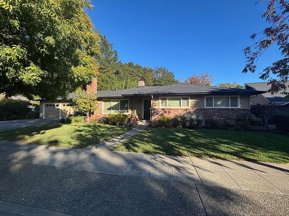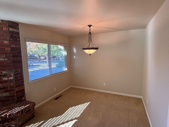 This singe level single family home is located in Northeast Santa Rosa and features 3 bedrooms with 3 bathrooms and is walking distance to the Town and Country Shopping Center. Through the front door and to your left is the large carpeted living/dining room combo (please note the fireplace is not operational). There is an additional living space towards the back of the home adjacent to the kitchen and it features laminate flooring and a sliding glass door to the back yard (fireplace not operational). The kitchen features Corian countertops, electric cook-top, double wall ovens, build in microwave, dishwasher and refrigerator. Off the kitchen is the large laundry room with washer and dryer provided as well as a utility sink. There is also a full bathroom located off the kitchen with a walk in shower. Two carpeted bedrooms share a full hallway bathroom with tub/shower combo. The carpeted primary bedroom is located towards the back of the house and features two closets and a sliding glass door to the bathroom yard. The primary bathroom has a double vanity with walk in shower and separate bathtub. Forced heat. Attached 2-car garage. Beautiful large backyard with landscaping included. Small pet(s) negotiable. Sorry no co-signers. 1-year lease. (MT)