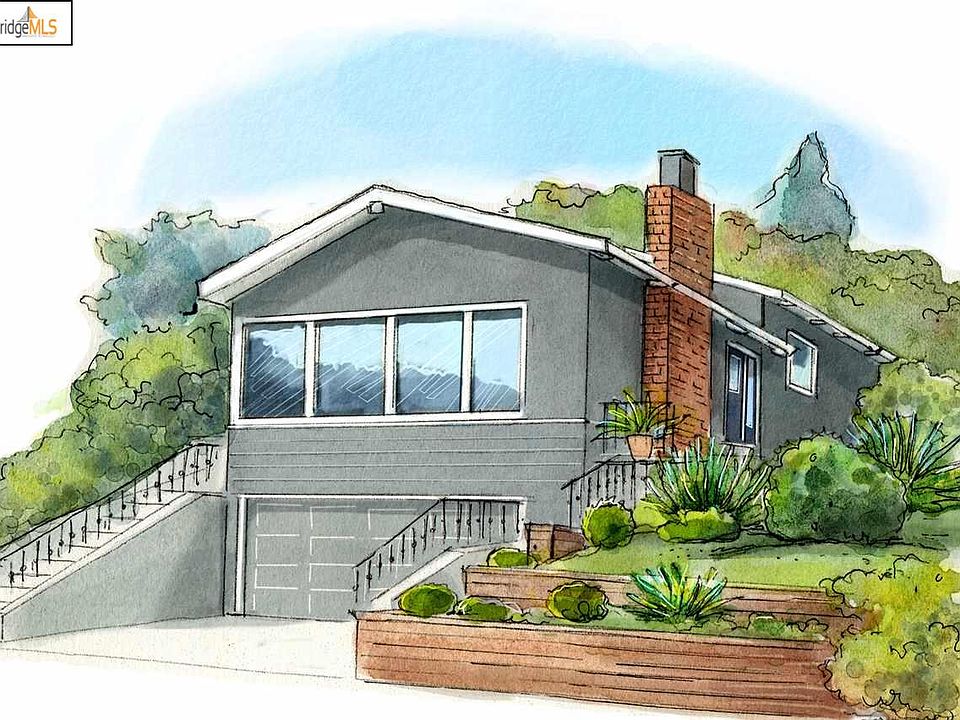 New Listing. Elegant Oakmore Mid-Century. This sophisticated three bed, two bath home enjoys an open floor plan, with dramatic vaulted ceiling and Bay views. Perched above the street, this home is sunny and serene. Walls of windows bathe the living and dining rooms in natural light. The kitchen has been tastefully remodeled. Waterfall counters on the island make it a perfect focal point for the room. The kitchen island is sure to be the hub of activities and family parties. The dining room is wrapped in banks of windows displaying slips of a view from every vantage point. On the upper level there are three sunny bedrooms, guest bathroom with period tile and plenty of closet space. The bedroom with en suite bathroom looks out on the backyard. Two of the bedrooms open to a sunny, private deck. A large two-car garage, laundry room and ample storage complete this home. You are just minutes to transportation, Montclair Village, parks, restaurants and shops.