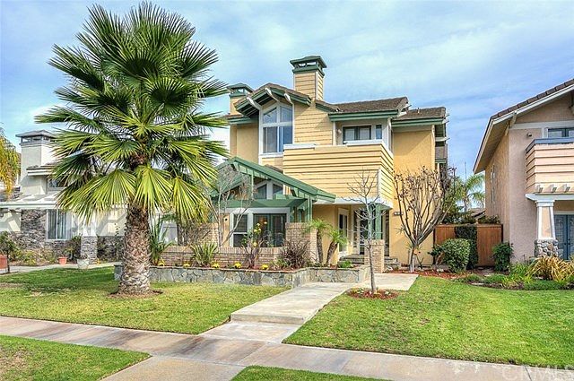 Enjoy living in this incredible family home in the heart of Huntington Beach. Contemporary Craftsman featuring a private enclosed patio, with a gorgeous stone entryway. Beautiful travertine tile & spacious living room, extra-high ceilings, and fireplace with light marble surroundings. The downstairs hallway leads to the formal dining room with a beautiful light fixture, direct access to the side patio,family room featuring another with tile surrounding fireplace, recessed lighting, & access to the spacious back patio via a sliding glass door. The kitchen w/formal dining boasts granite countertops, Jenn-air appliances, custom wood-glass cabinet doors & recessed lighting. Downstairs area also hosts two half bathrooms with light wood cabinets, & a large washer/dryer room with access to the 3-car garage.The staircase leads to a hall & loft. Large open balcony,perfect for relaxing .The first master bedroom has direct access to the balcony via a sliding door & features laminate flooring & connects to a full bath. The guest bedroom across the hall also offers access to the balcony. Continuing along the hallway is another guest bedroom & you'll eventually be greeted to the breathtaking master suite. This open area features a large master bathroom with travertine flooring, a walk-in shower with a separate tub, recessed lighting, & two separate sinks. The bedroom offers newly installed recessed lighting, an immense walk-in closet, a front balcony with awe-inspiring sunset