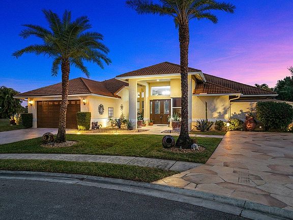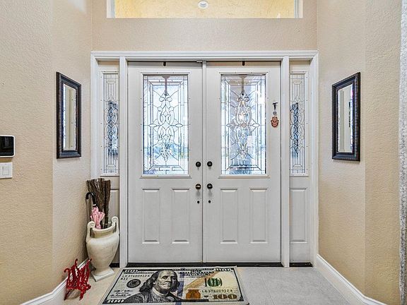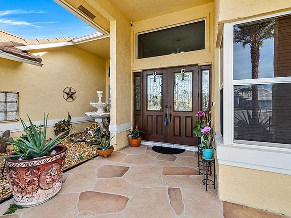 $ reduction! Beautiful home and grandiose entry! Situated on a cul-de sac-with 2 separate stamped concrete drives (plenty of parking space!) 24'' Porcelaintile through out, and 20 ft ceilings in living areas. Kitchen is updated with granite counters, tiled back splash, many high hats, and an island. 3 sets of sliders and a french door from the master b/r lead to the pool/patio. Master bath has h/h sinks, granite counters, spa tub, and seamless shower door. Outside is an entertainer's delight with water views, salt water, heated pool, and grilling area, and decorative lighting. Impact glass on all window except sliders, and doors. (has panels) Additional amenities incl. Aluminum roof (lifetime warranty), zoned AC, sec system with cameras, storage room on side of house, painted garag