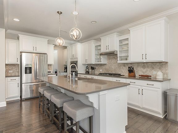 Gorgeous like-new home in ideal Apex location, minutes from downtown Apex, schools, I-540, & endless shopping/dining at Beaver Creek Commons. Short walk to Scotts Mill Elementary just around the corner! Covered front porch, beautiful hardwoods, crown molding, & lots of natural sunlight. Stunning gourmet kitchen features quartz countertops, stainless steel appliances, gas cooktop, tile backsplash, large central island, butlers pantry, abundant cabinet space plus a walk-in pantry! Open concept floor plan with spacious family room, large breakfast/dining area, and separate formal dining that also makes a great home office. Main level bedroom and adjacent full bath with walk-in shower, perfect for guests or in-laws. Primary suite upstairs features tray ceiling, dual walk-in closets & huge spa bath with separate vanities, large soaking tub & walk-in tiled shower w/bench seat. 3 additional upstairs bedrooms share hall bath with dual vanity & tile floor. Generous size loft/bonus room. Fully fenced backyard features screened porch, patio, and plenty of room to play or relax! Plus there's a neighborhood playground just a short walk down the street. Welcome home!