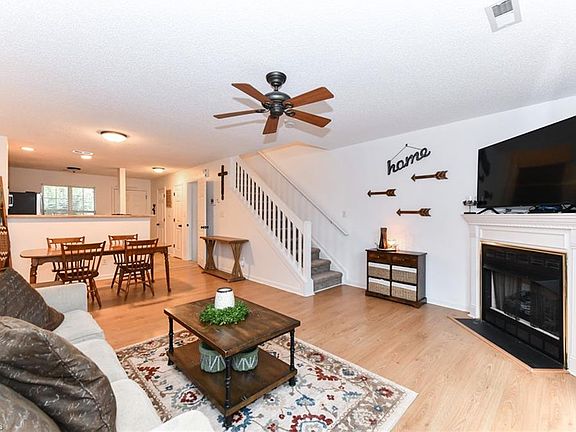 Back on the Market - No fault of the seller!! Welcome home to this popular McAlister Place townhome with a full finished basement! Open floor plan on the main level. Off the living room is a deck for grill out. New carpet on stairs and fresh paint throughout. Updated light fixtures. Basement features a den, bedroom, full bath & private patio. Corner gas log fireplace in the living room. Neighborhood pool.
