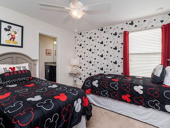 Welcome to this spacious 6-bedroom, 6-bathroom vacation pool home located in the prestigious ChampionsGate Resort. This private home offers a luxurious retreat for families, featuring a north-facing private pool with spa, a theater room, and a game room complete with arcade games, PS4, and Xbox. Themed bedrooms, including Marvel and Mickey, add a touch of fun to your stay. Situated just 10 miles from Disney World, this home provides a perfect base for exploring Central Florida. The fully equipped kitchen offers seating for 8 at the dining table and 3 at the breakfast counter. This home is designed with comfort and entertainment in mind. Enjoy the private pool and spa, or relax in the theater room. The game room is perfect for family fun, featuring arcade games, PS4, and Xbox. The fully equipped kitchen is ideal for preparing meals, with ample seating for family gatherings. This pet-friendly home welcomes dogs with a non-refundable cleaning fee of $175 plus tax, with a two-dog limit. An optional pool and spa heating charge of $30 per day plus tax is available. The resort allows a maximum of 5 cars or 3 large passenger vans, with additional parking for visitors. Additional rental items such as BBQs, cribs, and high chairs are available for rent. Located in the gated community of ChampionsGate Resort, this home offers easy access to top attractions. It's a short 9-minute walk or 2-minute drive to the Oasis Clubhouse, where you can enjoy resort-style amenities like a huge pool with cabanas, a lazy river, and a state-of-the-art fitness center. The property is conveniently located 10 miles from Disney World, 21 miles from Universal Studios, and 18 miles from SeaWorld. Shopping and dining options are just a short drive away. This home is smoke-free and pet-free for your comfort. Complimentary Wi-Fi is provided, and towels and linens are included. Check-in is seamless with online email check-in, and 24/7 on-call maintenance is available. The property is professionally managed with over 26 years of experience. Please be aware of the resort's parking rules to avoid fines.