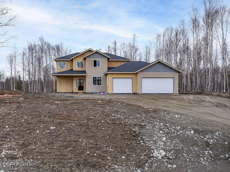 NEW CONSTRUCTION 4 BED 2.5 BATH 3 CAR GARAGE!!Denali North proudly introduces this beautiful home located just minutes from downtown Wasilla! Boasting 2,082 SQFT, 4 bedrooms, 2.5 bathrooms, and a generous 3-car garage equipped with one 10'x8' door and one 16'x8' door. The back of the house faces south with plenty of windows to capture the natural light! Enjoy the convenience of a spacious walk-in laundry room and a main floor bedroom, while the remaining bedrooms are situated on the second floor. Upgrades to include a cozy gas fireplace with a stone mantel, durable composite decking, elegant tiled showers paired with a standalone soaker tub, and luxurious quartz countertops throughout the home. Experience comfort and style in this exceptional property!Covered front porch and 16'x8', 128 SQFT back deck! You do not want to miss out on this fully loaded, new construction opportunity!!